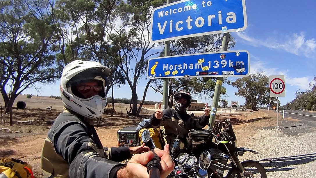 The next day, on March the 6th 2016, we entered the western side of the Great Ocean Road. We stopped everywhere we could, took heaps of photos and had a beautiful day. I was a little anxious though, as the trip meter in the GPS counted back to zero as we homed in to the sign where it had all started in 2012. I had visions of the bike breaking down or a car pulling out without looking. The bike(s) didn’t break down and we spotted all the cars that pulled out well in advance. Strangely enough the world record had never been the reason why we did this trip, but now that we were so close it would be a shame if we somehow missed it. But all went well and on March 6th 2016, on his grandfathers birthday(!), Mike became the youngest person ever to have officially circumnavigated the world by motorcycle… I had a bit of a lump in my throat to be honest and pinked away a tear or two. Suddenly all this cropped up emotion took the better of me. It wasn’t the world record, I mean I was happy for him to have the record of course but we finished the trip. The trip we almost had to abandon when Mike’s mum and my girlfriend of 34 years suddenly decided to leave, taking half the funds with her. The scary moments we had had in various places all over the world, from being at the receiving end of road rage in the USA for no reason when I was rammed off the road by an SUV (the tire mark is still on my pannier!) to when Mike had a head-on on a mountain road in Kyrgyzstan by a car on the wrong side of the road which nearly had him go down a ravine… He could have been an invalid when his own mum slammed into the back of him on her 230kg bike. We had been struck down with salmonella poisoning in India and Mike’s venomous spider bite almost killed him. Yet now we were standing here, we had lost a lot of weight as we had to skimp to the bone to get here but we were still alive after almost 4 years and 120,000 km riding around the world… we did it! Against the odds, as a 16 year old would be too young to start a trip like this, they said, while Triumph Australia said my Bonneville wouldn’t make it up the Dalton Highway towards Prudhoe Bay. Well it did, and it did quite a bit more than that! And as for Mike being too young, when I took him out on his first ever ride on the road I could see he was a very defensive rider. He was very much aware of what was going on around him too. He had been riding dirt bikes since he was 12, so riding a bike wasn’t new to him, but anyway you can learn to ride a bike but being a safe rider is something you have or you don’t. He has it and that’s why I said ok let’s do it. And I’m so glad we did!
